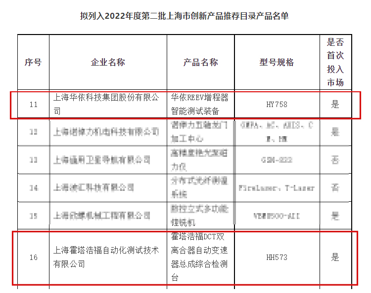 近日,上海市經濟和信息化委員會發布了《2022年度上海市創新產品推薦目錄》。華依集團旗下的2項產品——華依REEV增程器智能測試裝備、霍塔浩福DCT雙離合器自動變速器總成綜合檢測臺成功入選,獲得重點推薦。